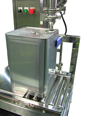 | バックインボックスや一斗缶ほか、できるだけ沢山の種類の容器にも対応できるように、ノズルの高さや前後位置を調整できます。(左右方向は、容器位置決め冶具で位置を決めます) | ![]() |